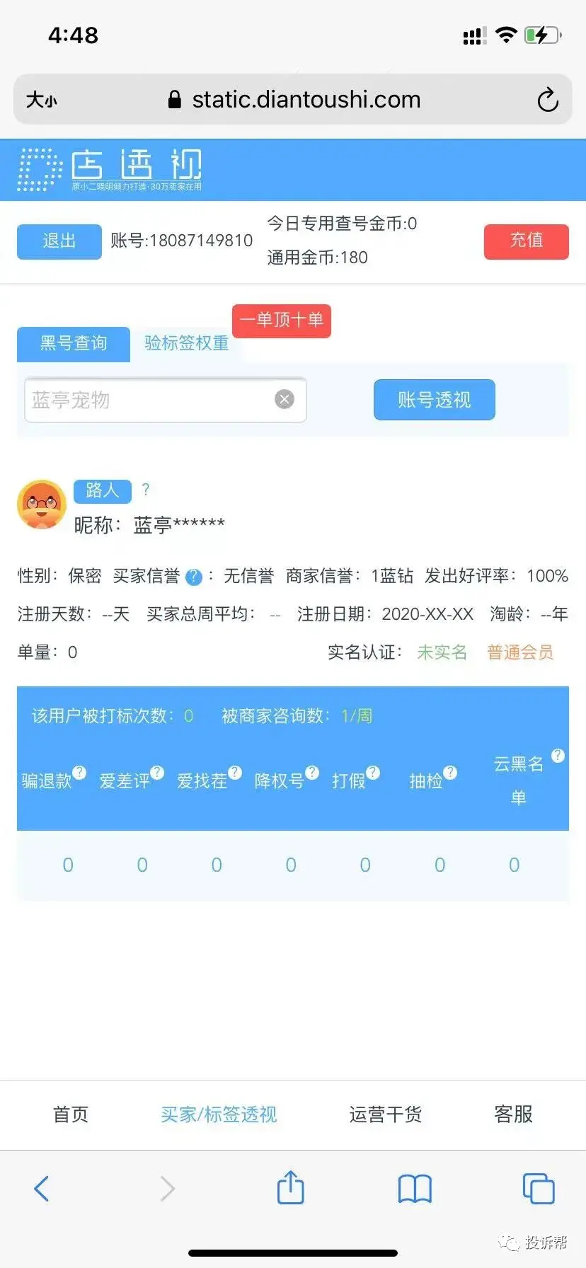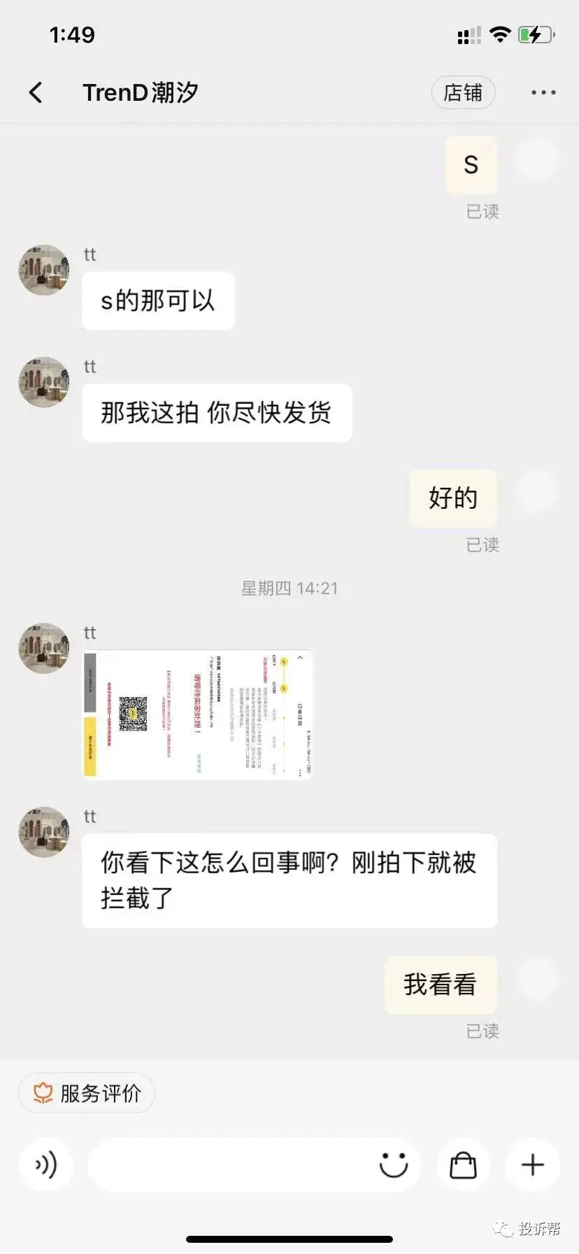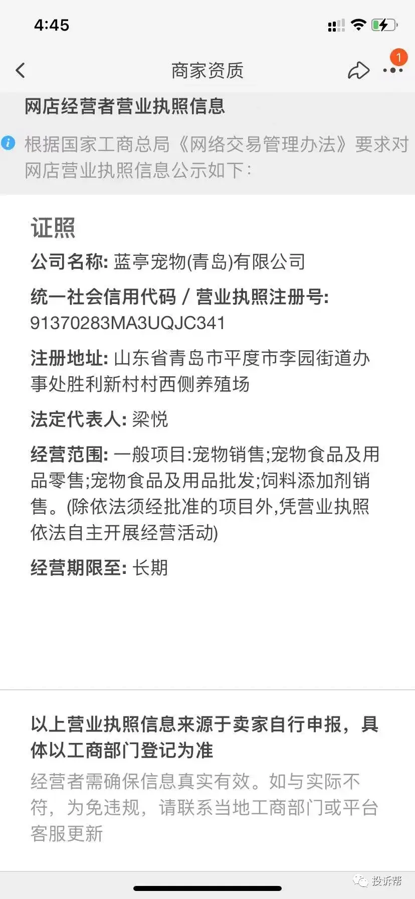 C小姐通过骗子的淘宝店铺,找到了他的营业执照和手机号码,并在十分钟左右的时间内就联系了淘宝客服。