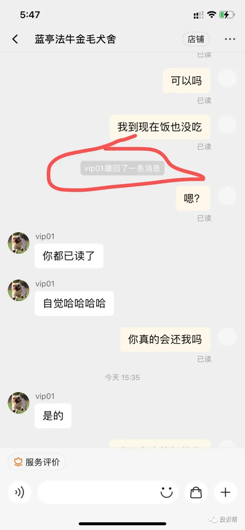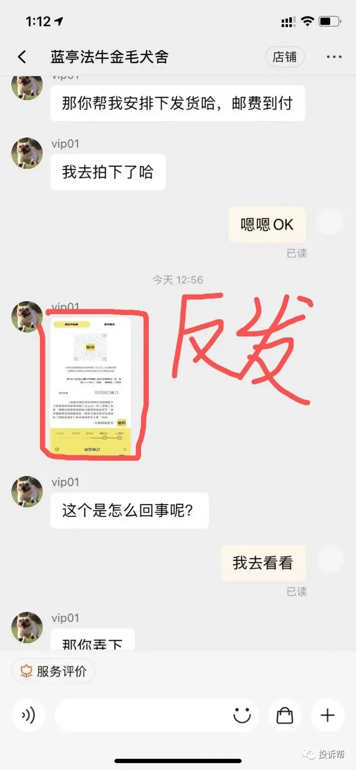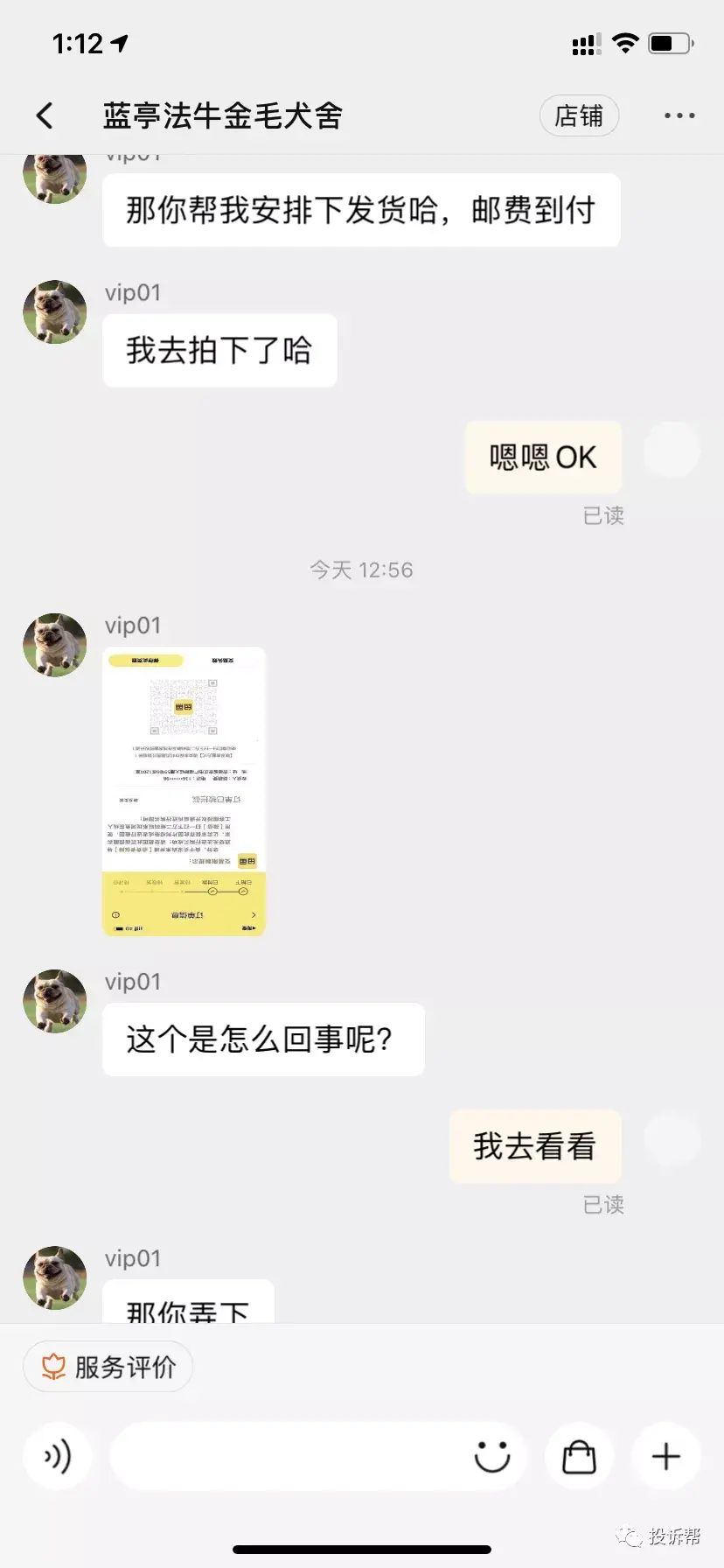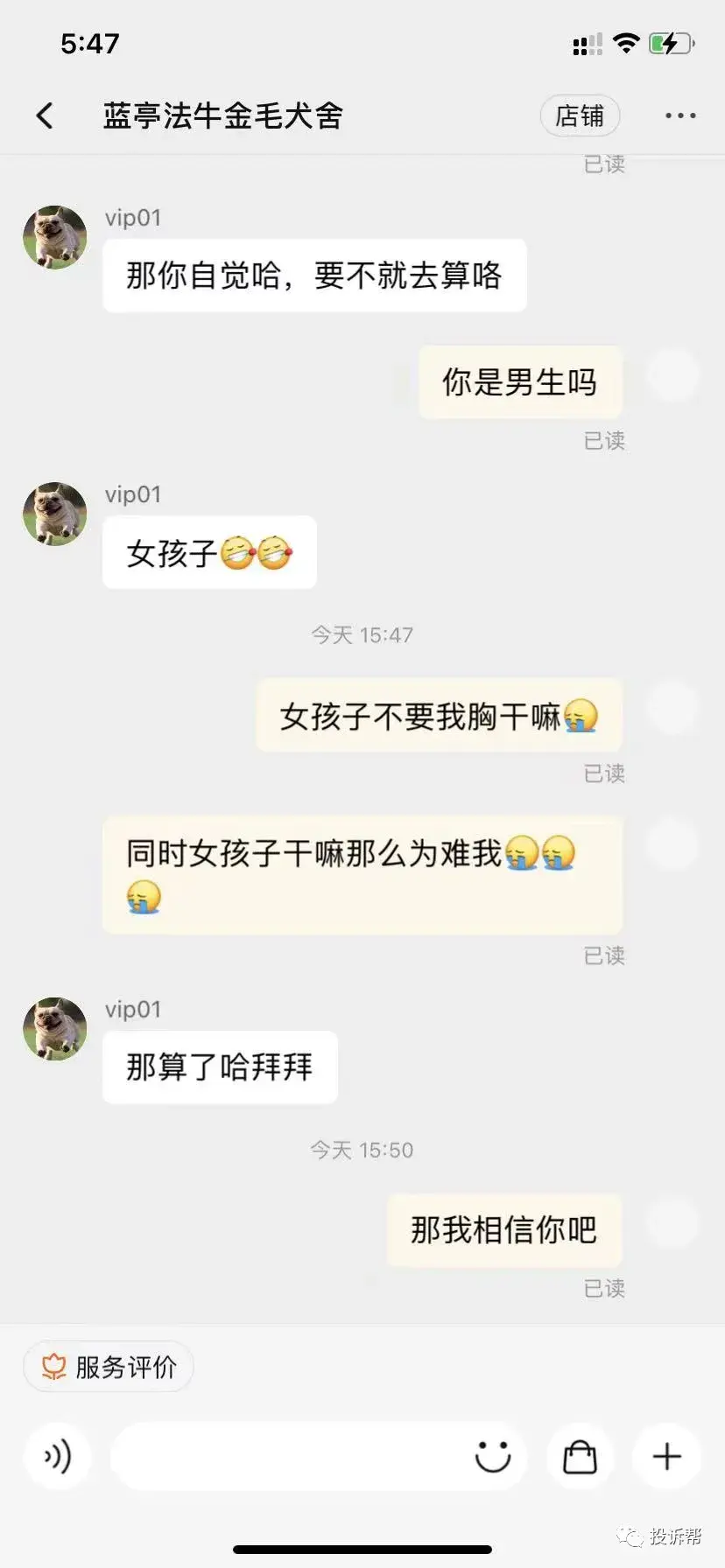 C小姐说,这个买家的淘宝昵称为“蓝亭法牛金毛犬舍”(以下简称“犬舍”),称C小姐没有开通消费者权益导致订单被拦截,以致他无法付款。
