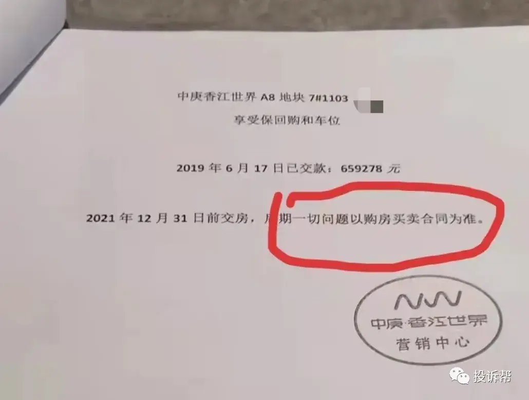 福州的W先生,2019年全款买了中庚香江世界的商业公寓,产权40年,挑高跃层。可是到目前为止,开发商仅仅提供了一张收付款据给他,迟迟不给办购房合同。从2019年底开始,甚至出现工地停工的状况。