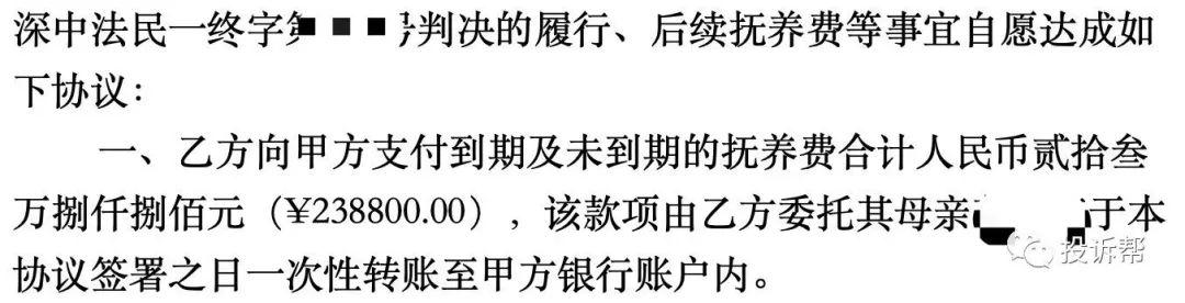 考虑到X女士前夫现在的家庭情况,想要他每个月给钱并不容易。为了避免后顾之忧,投诉帮平台的合作律师团队决定请求一次性支付,即支付子女满18岁之前所有的抚养费。