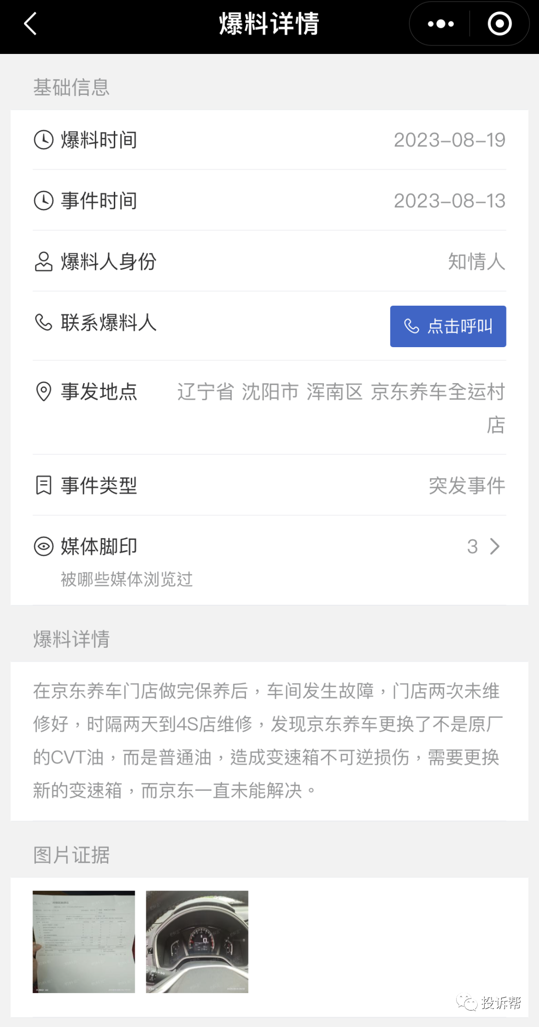 投诉帮平台的豹料云系统在8月19日接到另一则车辆常规保养导致车辆受损的案例,疑似使用非原厂机油所致。