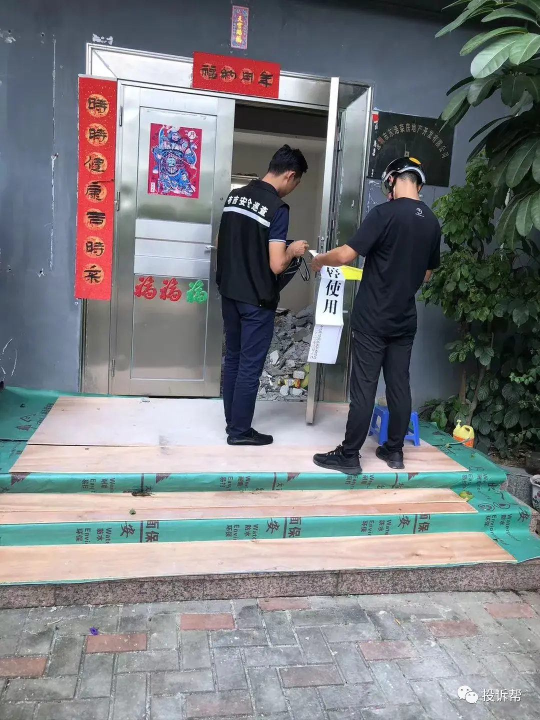 业主们随后联系了物业管理处,物管工作人员当着业主的面打电话给“房东”,但是直到街道执法人员赶过来,“房东”也没有过来,但这时装修的人已经离开现场,并锁上了门。最后,执法人员以房东不在现场不能贴封条为由,没能进行现场查验的过程。