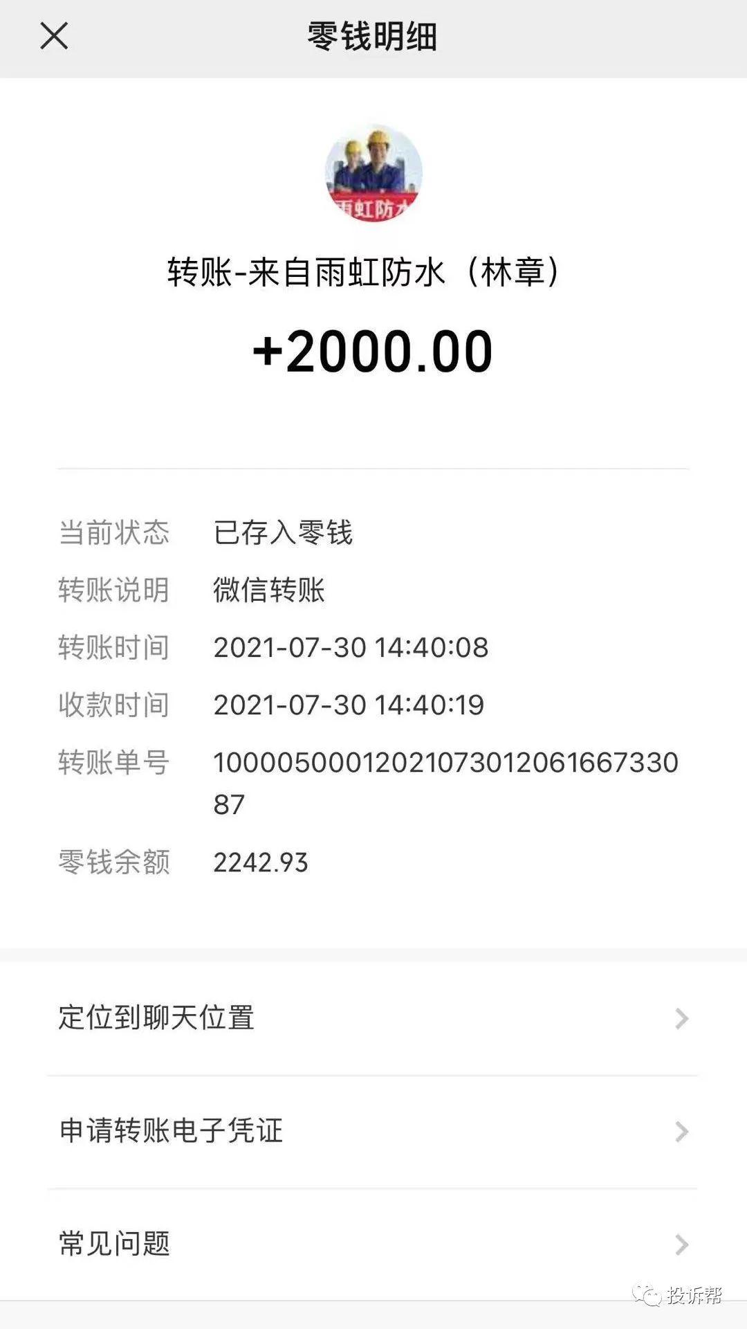 “我问他们(雨虹施工人员)大概要多少钱能做完,他说大约1000到2000元就可以做完,而且很快。那我就说,那你们明天早上就来帮我做一下吧,他们说好。”